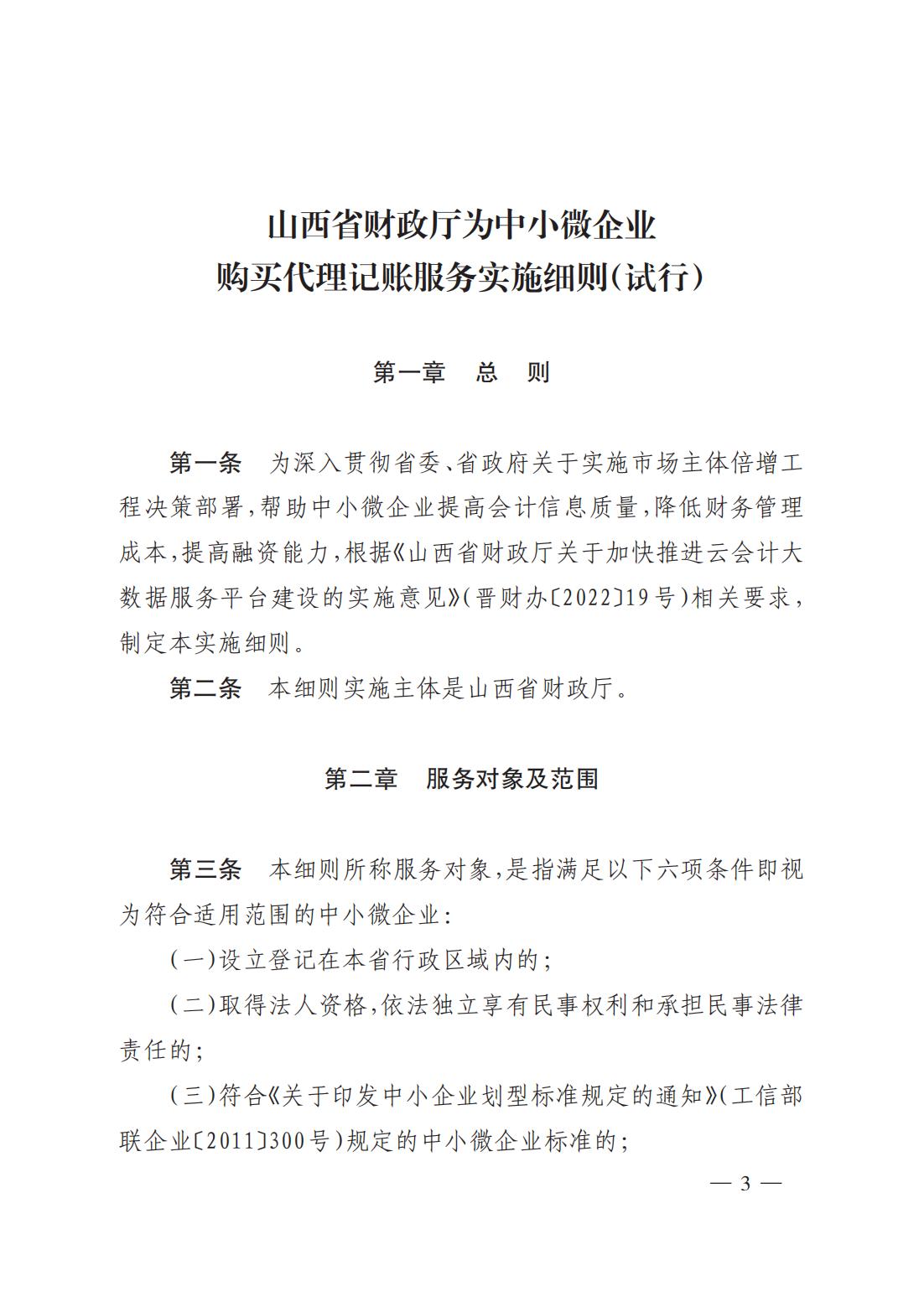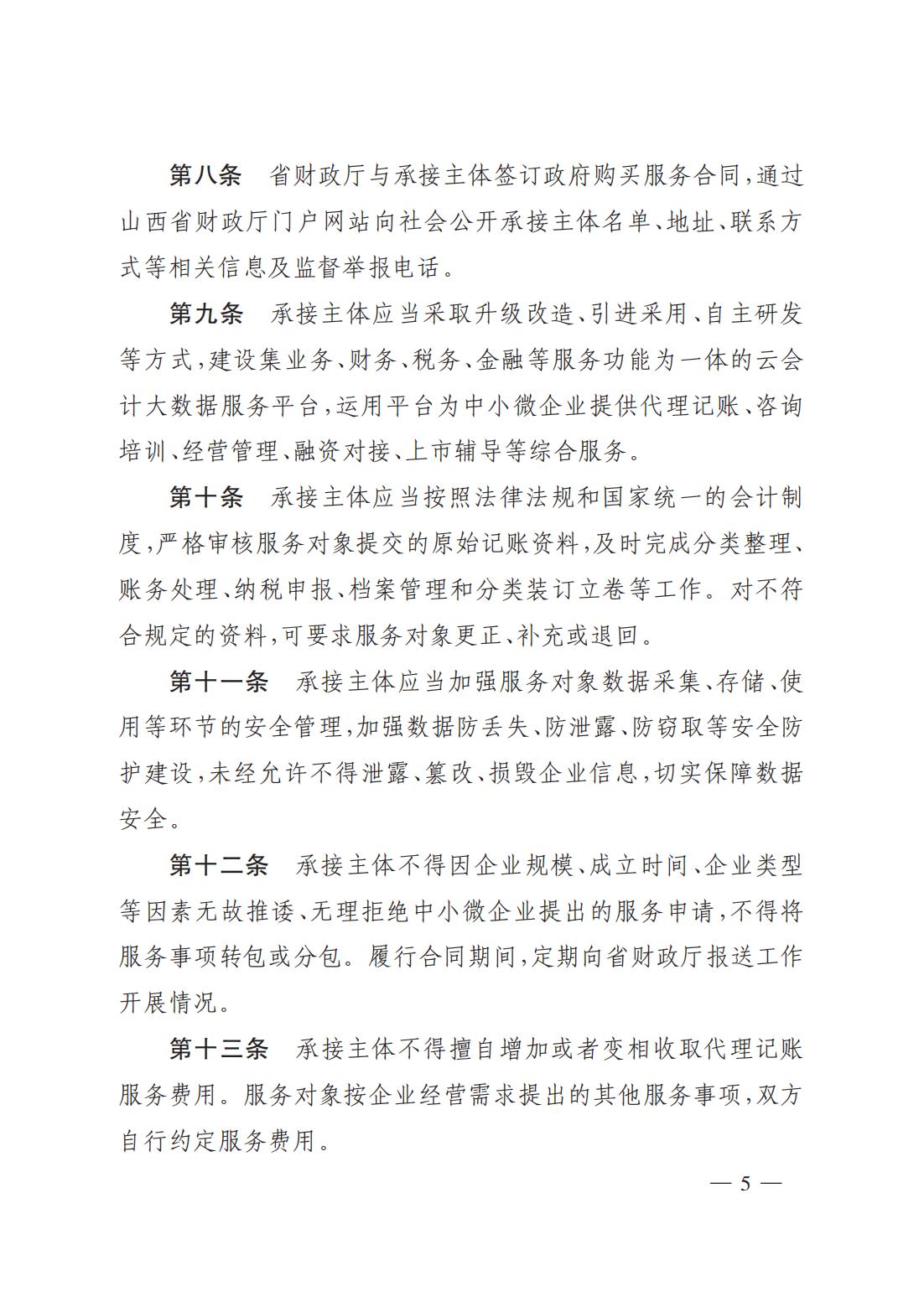 關(guān)于印發(fā)《山西省財政廳為中小微企業(yè)購買(mǎi)代理記賬服務(wù)實(shí)施細則(試行)》的通知