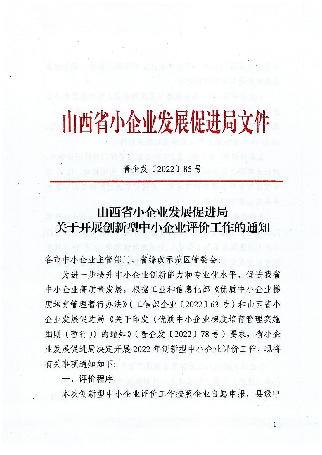 關(guān)于開(kāi)展創(chuàng )新型中小企業(yè)評價(jià)工作的通知